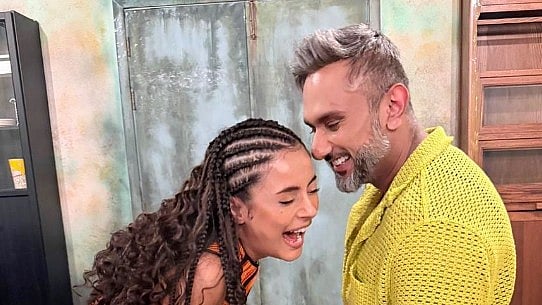 Shehnaaz Gill shared an interesting carousal on her Instagram feed this morning which has already started speculation of a collaboration with YO YO Honey Singh. In the photographs, one can see Shehnaaz wearing a yellow, orange and black hued high-low dress with black knee-high boots. Her hair-style is all about Jamaican cornrow braids. She has kept her accessories to the minimum with just clip-on ear-rings. Her sculpted make-up which follows the brown-ish palette gives perfect shape and structure to the face and it complements her look very well.