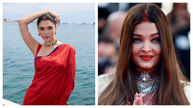 The sindoor took centre stage at the Cannes Film Festival this year as not one but two Bollywood icons spotlighted the vermillion. While Aishwarya Rai Bachchan wore some vibrant sindoor with her ivory Manish Malhotra saree as she walked the red carpet at Cannes, Aditi Rao Hydari too wore a visible speck of red with her scarlet Raw Mango saree during a photocall.