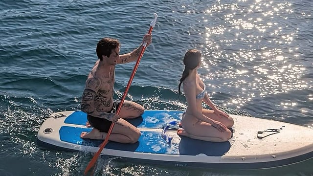 Clips show David shirtless as he leans in to kiss her, lifting Dove while they dance and gently dabbing cream on her face.