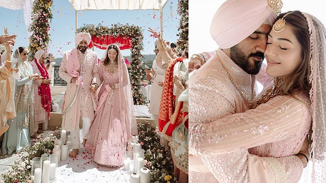 Raja The Great actress Mehreen Pirzada has tied the knot with Arsh Aulakh in an intimate ceremony in Himachal Pradesh's Chail on Sunday, April 26, in the presence of close friends and family. The couple ditched the usual reds, nudes or ivories to choose a matching blush pink wedding attire.