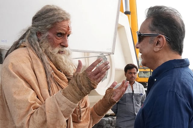 As the much anticipated sequel Kalki 2 gears up for its production, two cinematic legends are all ready to ignite the set with their electrifying jugalbandi. Photos from the set have surfaced the internet as Amitabh shared some glimpses on his blog. A historic moment was captured as Amitabh, in full character costume, greeted Kamal, culminating in a warm hug between the two legends.