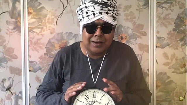 "My wife and daughter helped me to create this funny-looking persona of time. I used one of the scarves they got from Egypt and wrapped the same around my head like a turban with two forks planted on it, resembling the two hands of a clock. With nothing really to do during the lockdown, it was worth shooting the fun film. I loved narrating the story and connecting the four couples in the film," tells Mir.