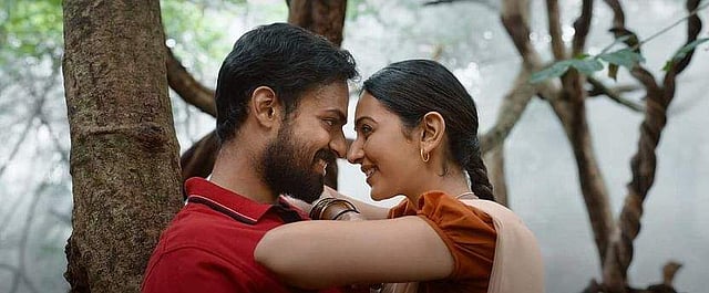 When a drought compels Ravindra’s father and other shepherds from their village to take their sheep to the forest for grazing, he accompanies them on a challenging hike. There’s a man-eating tiger, red sander smugglers who prey on innocent forest dwellers, thieves, and even the harsh natural conditions that act as obstacles. The screenplay follows the pattern of introducing a conflict, resolving it for the time being, and moving on to the next one. You expect these challenges to snowball into something bigger, but the film takes a much simpler approach in the climax, and most of these conflicts remain unresolved. Now, there are two ways to look at this choice: it’s either indicative of half-baked storytelling or the film cares more about the journey than the destination. Perhaps this is why Ravindra remains a mute observer for most of the first half absorbing the nature, and the knowledge imparted by his wise father played by Sai Chand, Obulamma (Rakul Preet Singh), and fellow village dwellers.