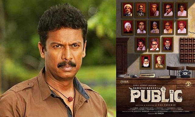 Speaking about the film, Paraman says, "A layman from a society turning into a politician is what we have seen all this long. But what if things happen the other way around? Samuthirakani in Public is about grass-root level party workers, the politics that happen around them and how the party leaders make use of these loyal cadre members." Explaining the first look, he says," The first look can be interpreted in several ways based on one's political stance. The photos of leaders used in the first look belong to different political ideologies but what's common among them is how they stood by their party's policies till the end and how they were integral in pushing their parties to the next level."