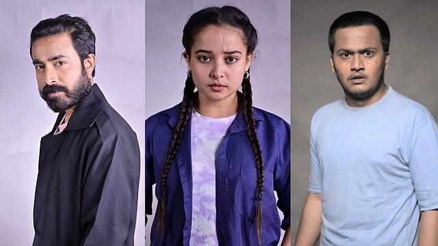 Debraj Bhattacharya (L), Rwitobroto Mukherjee (R) and Priyanka Bhattacharjee collaborate for the short film, Shob Choritro Ra