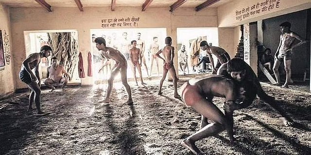 Clad in a steel-grey cotton langot, the teenage Karan takes coconut oil in his palms, rubs them together, and slaps it noisily onto his flexed biceps, making them glisten against the rays of the rising sun. He then reverently bows before his opponent, Dhaniya, and the tussle begins. The match is just another dawn training session of kushti or pehelwani, held at the Tulsi Akhada, one of the oldest akhadas in Varanasi, Uttar Pradesh.