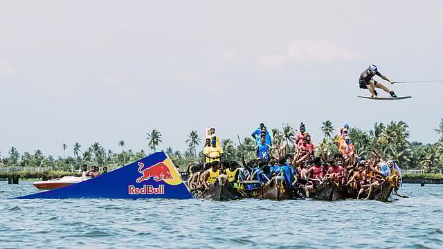 Popular Austrian wakeboarder and Red Bull athlete Dominik Hernler recently made a splash in Alappuzha, with a spectacular jump over about 500 people in five traditional snake boats aka chundan vallams.