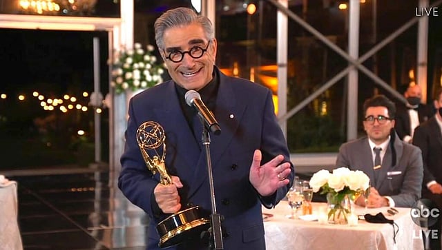 Moments later, his son won the award for comedy writing for Schitt's Creek episode, then shared a directing award and captured the supporting actor comedy trophy. The supporting actress trophy went to his co-star Annie Murphy.