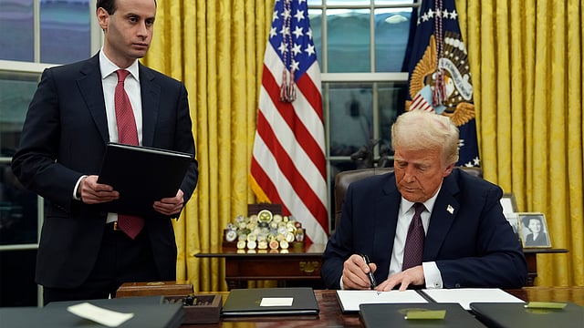 President Donald Trump signs an executive order to create the Department of Government Efficiency (DOGE) in the Oval Office of the White House Evan Vucci via AP