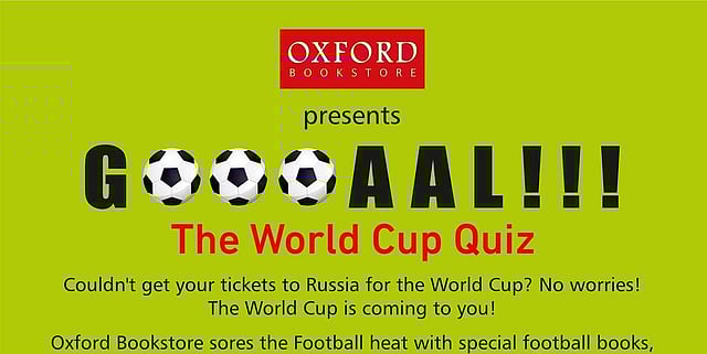 Oxford Bookstore kicks off the World Cup fever with special football books, a World Cup- themed decor and to top it all GOOOAAL!, a World Cup Trivia quiz to set the mood. Come and participate in the quiz and show your love for football.