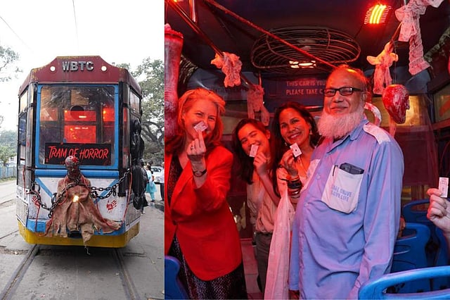 The specially decorated tram with skeletons, horror masks, half-cut bodies, and more horror elements is a part of the celebration of Australia being the focus country at the 29th Kolkata International Film Festival. The festival will be screening a milieu of selected outback Australian horror movies including Picnic at Hanging Rock by Peter Weir; Sissy by Hannah Barlow; Wolf Creek by Greg Mclean, and 100 Bloody Acres by Cameron & Colin Cairness.