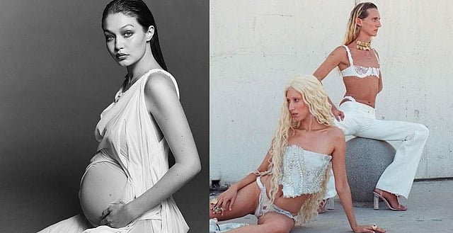 Trust Gigi Hadid to be ahead of the curve in absolutely everything. For her maternity photoshoot that has been making waves on social media the supermodel chose to wear a custom-made number from the newest Spring/Summer lineup of Greek inter-disciplinary artist and designer Dmitri Di Petsa, whose 'wet look' dresses have found some major love from A-listers like FKA Twigs and Kylie Jenner. Her London-based label Di Petsa is one of the most interesting young names in the conscious fashion spectrum.