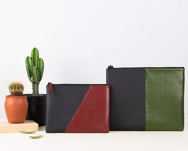 Look out for multi-functional pouches in grainy black or a glossier red and green. These come with a metallic zipper and a soft inner lining of organic cotton. Expect two sizes — a small (fits a Kindle) and a large (big enough to accommodate a mini iPad). Use as travel organisers, for make-up storage or electronics. “By popular demand, we have money clip wallets made with cactus leather coming out in January next year,” she adds.