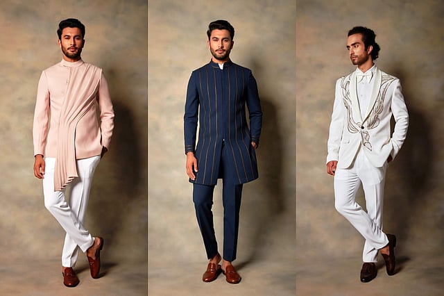 Our collection majorly has menswear in pink, denim blue, sage green and classic ivories. Our team of designers made sure to include colours that are not available easily. We usually see menswear feature colours like grey, black, white and brown. Hence, we made it a point to include such colour options for men that wish to break the stereotypical colour ranges offered for men in the market.