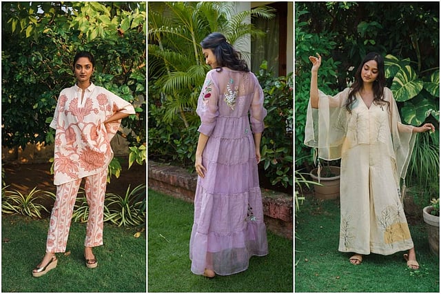 “We’re experimenting with a brand new technique (for us) called Cyano Printing. These are sonnets in timeless linen, trimmed with exquisite tatting cotton mesh lace, crochet lace detailing and ‘tiers-to-twirl-in’ silhouettes that flirt with your curves. Capturing the beauty of the vintage and the Victorian, Cyano draws inspiration from the age-old art of Cyanotype printing. We played with light to print the most intricate motifs in shades of indigo and dusty rose on the purest off-white linen. The blues are absolutely gorgeous and everything about this collection is very charming, graceful and gentle — very old school,” shares Kaveri, who is a favourite among several celebs including Nithya Menen and Shabana Azmi. “The collection brings back memories and connects one to our cherished images of home — bringing in elements like the gate of the house, wrought-iron window grills, love letters, a girl on a swing in the garden, roses, chintz motifs and lots more,” the designer adds.