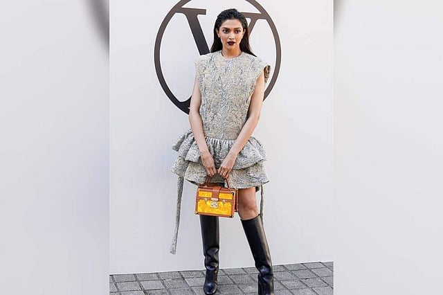 Bollywood actress Deepika Padukone attended the Louis Vuitton show at the ongoing Paris Fashion Week, held at the Louvre Museum in the city on Tuesday. The actress was seen donning a beige dress with ruffled shoulders which she paired with a skirt and high-knee black boots. She was seen sharing the first row seats at the event with celebrities such as Ana de Armas and Alicia Vikander. Other celebrities including Leslie Mann with her daughters Iris and Maude Apatow, Emma Chamberlain, Natalie Emmanuel, Jaden Smith and Gemma Chan were also seen at the event. Many pictures of the actress interacting with the other guests at the event were posted on social media by fans.