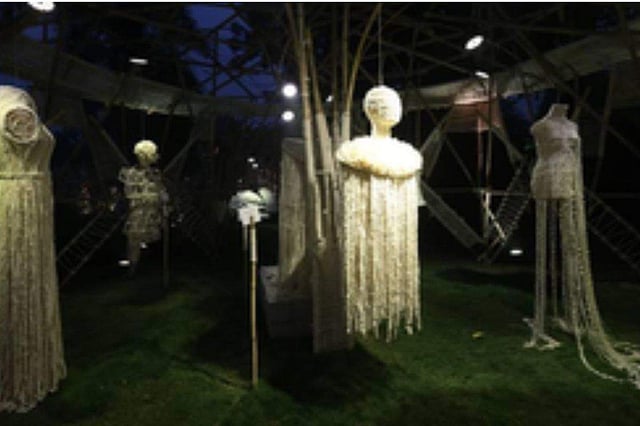This extraordinary retrospective show demonstrated her innovative approach to fashion, showcasing her ability to merge materials like metal, wood, paper, and bamboo with textiles, craft, embroidery, and surface ornamentation.