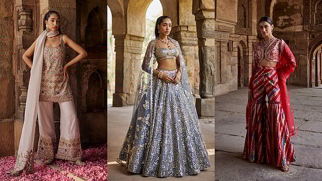 The new collection, Indian Anthology, offers luxury solutions for everyone by catering to all styles and silhouettes. Inspired by the concept of an anthology — a group of stories — this collection features a diverse range of designs, including drape saris, ghararas, shararas, lehengas and jacket sets, ensuring there is an outfit for every taste and occasion. Each piece in the collection embodies Indian summer aesthetics, blending traditional craftsmanship with modern flair. This collection drove us back to our drawing boards to develop inhouse prints inspired from our motifs and embroideries. Indian Anthology includes classic silhouettes with a modern twist. The collection ensures that each garment not only looks exquisite but also offers the highest quality and comfort, making it perfect for various events, from weddings to festive celebrations.