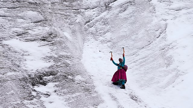 The layered bell skirt, traditionally worn by Indigenous women in Bolivia’s highlands, is an arresting sight against the stark white slopes of Huayna Potosí, one of the country’s tallest peaks. Yet for González Maguiña, a professional mountaineer, the pollera is neither costume nor obstacle. It is simply what she wears.