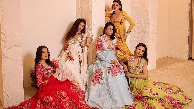 Divaa has chosen fabrics that flow yet hold structure — satins, soft crepes, and airy organzas. The colour palette mixes dreamy yet bold tones such as deep jewel shades, muted pastels, and classic neutrals, with a vibrant twist. The designs also balance minimalism with statement-making details like unique embroidery placements, asymmetric cuts, and subtle sheer accents, making her pieces stand out.