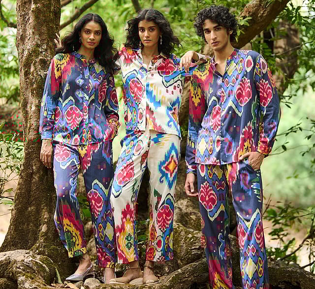 The good news is, this collection has something for both genders. For women, there’s a fluid balance of tailoring and movement—shirt dresses with asymmetric hems, co-ords that go beyond the basics, and texture-forward pieces that feel fresh yet understated. For men, relaxed shirts meet crisp trousers, classic shapes are reimagined in surprising prints, and details that make all the difference.