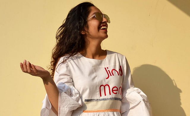 Phulkari, which means floral work, has for a long time been restricted to shawls, dupattas and headscarves. But Mankiran wanted to make phulkari more accessible to the younger dressers. Hence, she created shirt dresses with catchy Punjabi phrases like “Jind Meriye (My beloved)” stitched on it, with intricate heart and flower motifs. She also draws inspiration from Punjabi folklore and the old-world charm, which is in the typography she uses.
