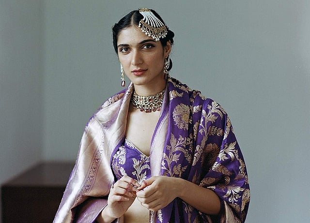 From this eclectic collection, his buyers can expect an opulent mix of saris and separates such as knee-length kurtas paired with shararas and silk satin odhanis. The colours spotted in the collection comprise greens, mustard yellow, magenta, blush pinks with a hint of red. “This is the first time we have used a bit of black as well,” recalls Sanjay. Apart from silk, the fabrics that Sanjay has worked with for this collection range from brocade, organza and mashru.
