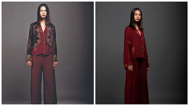 In an attempt to bring his travel journals to life, Bengaluru-based designer Jason Cheriyan decided to revisit the memories, postcards and photographs that documented his journies. “Central to the collection are ensembles that are comfortable and can be worn on the go, and are still classy,” says the designer, adding that the garments come with travel essentials like lined pockets. Drawing inspiration from memories of his travel to Hampi, the collection translates the uneven landscape into abstract textures through machine embroidery techniques. “I believe there is an artisanal quality to machine embroidery