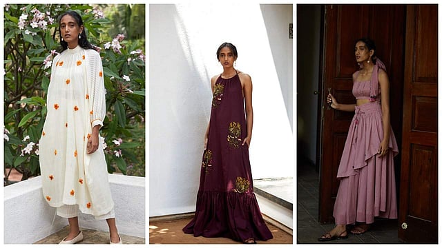 Keeping in mind soaring temperatures, the collection is dominated by cotton mul fabric woven with dobby weaving techniques and replaces metallic zari embroidery with zari needlework that uses cotton and anchor threads instead. “This keeps things lightweight and makes for easy wearing anytime through the day,” she says.