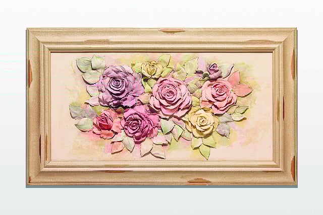 Designer Ratika Kaul's jewellery brand has always showcased an exquisite sense of symmetry and an innate leaning towards gorgeous themes from nature. Now, her foray into designing a capsule collection of saris alongside a series of delicate, sculptural artwork at her recent showcase of All Things Floral seems to be celebrating new beginnings juxtaposed with the nostalgia of her travels. Staying true to her passions, we found profuse blossoms of assorted roses and peonies in her sculptural artwork, tying it seamlessly to the drapes that were embellished with the delicate handwork of floral designs. With a few poppies and hydrangeas thrown into the mix, the designer’s love for roses indeed comes through in her artwork. Some whites are gilded with gold, while many hues are muted with white; the simplicity of the process comprising plaster, oil paints and a palette knife is belied by the ethereal vibe of the final art.