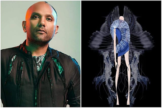 First, was finding people who make fabric out of the plastic found in oceans and landfills because for me, the carbon footprint is a burning reality and all of us in the fashion and other industries need to wake up to the need of causing lesser carbon footprint. Thankfully, we found someone in Pune who weaves actual plastic into the fabric, and we sculptured clothes out of that. We have also used some PET plastic as a base for our garments. So the challenge was: could we make it look Gaurav Gupta?