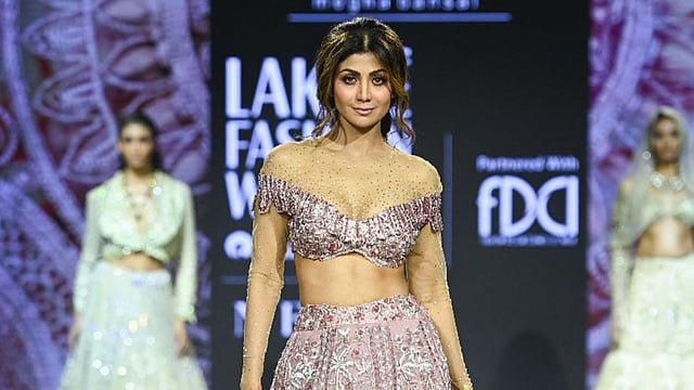 Shilpa Shetty stole the show at Lakme Fashion Week, leaving the audience mesmerised by her stunning appearance as the showstopper for designer Megha Bansal. Shilpa, known for her impeccable fashion sense, embodied a breathtaking princess in a dazzling blush pink lehenga. The ethereal ensemble perfectly complemented her radiant beauty and served as a masterclass in effortless elegance.