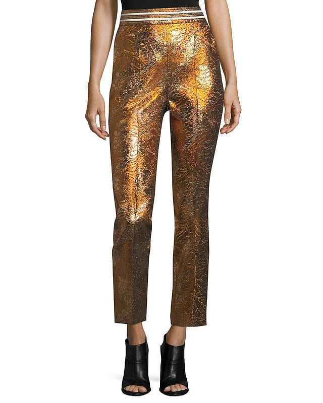 Make a bold statement in Peter PiIlotto’s cropped metallic jacquard pants. The high-waisted pair blends copper and golden hues for a truly glamorous look. Pair with a black bustier and nude pumps. Rs.64,900 approximately