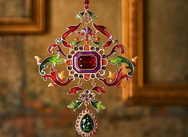 This cross ornament is handmade at designer Christian Lacroix’s studio. Made from glass and metal, it is handpainted and features multi-coloured crystals. Rs.4,343