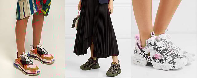 While chunky sneakers may seem like they only belong in your dad’s closet, celebrities Bella Hadid and Kendall Jenner are pairing them with straight-off-the-runway outfits. We pick a few pairs that take these running shoes to the next level, from brands such as Jimmy Choo and Versace.