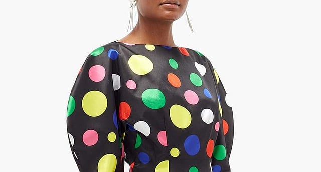 Inspired by California’s superbloom, this pair of wide leg trousers from Carolina Herera, is striking and dramatic. Cut from poplin, it is printed with a psychedelic pattern and is designed with a high waist and large buckled belt. Rs.1,03,180 approximately