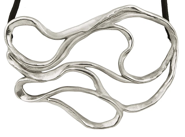 Shop Fusio is known for its interesting take on everyday motifs and its abstract designs. This piece is called the Lava Choker. It is made from brass plated with 22k gold, which is contrasted with black rhodium. Rs.3,500