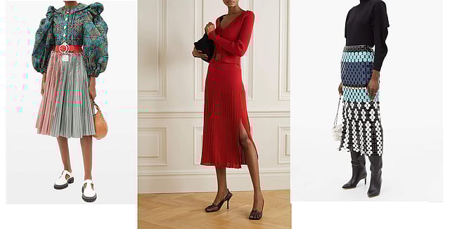 From statement numbers that do the talking, to solid-coloured staples, calf-length midi skirts are everywhere. Designers such as Johanna Ortiz, Chopova Lowena and Matty Bovan are giving the humble midi a makeover. Here are our picks that are perfect for the chilly season:
