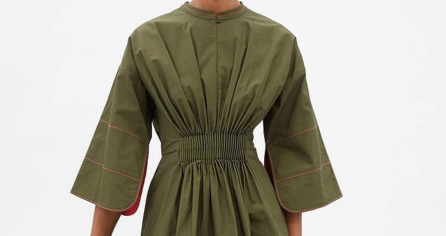 Crafted from cotton poplin, Roksanda’s Aylis top is smart and contemporary without being staid. The cartridge pleats at the waist give it a flattering fit while the contrasting orange topstitching on the olive green fabric give it added appeal. Rs.54,485 approximately