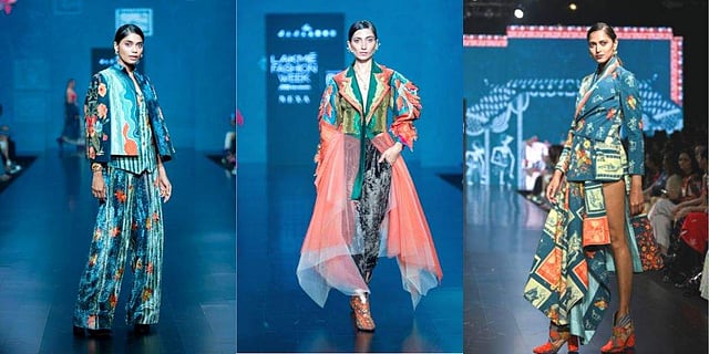 We speak to designers Kanika and Neelanjan post their showcase, “Archipelago is an attempt to capture the diversity of the Indonesian islands through colours, textures, appliqué, prints and stories. The inspiration for the reactive prints came from the beautiful traditional coastal batiks by Dutch textile artiste Eliza Charlotte Van Zuylen and the famous Wayang Kulit shadow puppetry’s rendition of the Ramayana and the Mahabharata. The embroideries and textures are inspired by the rich natural biodiversity, brought alive in Chanderi silk.” The designers went to various islands in Indonesia such as Bali, Ubud, Surabaya, and Mount Bromo that acted as a muse, “One aspect that caught our eye was the unity in diversity, where despite being an Islamic country, Indonesia embraced Hinduism as a part of their culture and traditions. Secondly, the natural beauty of the less explored East Nusa Tenggara region dotted with forests, active volcanoes, pink beaches, and underwater caves inspired us.” Entrancing Indonesia translated into tale-telling ensembles of the labels such as printed jackets, overcoats, breezy dresses and bodycon adorned with motifs of marine life, postal stamps, botanicals and more.