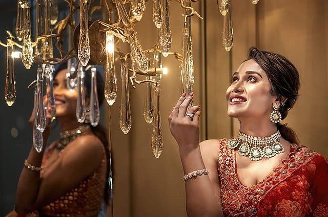 From stunning jhumkas to delicate necklaces, Avama Jewellers’ latest edit, Ananya, will leave you spoilt for choice. Diamond jewellery embedded with colourful gemstones, sleek diamond studded earrings, delicate chokers, necklaces, rings and earrings, crafted in polkis are all versatile pieces for new-age buyers. The young ones can go for their statement earrings and elegant bracelets that can be worn for poker parties as well as Diya Puja.