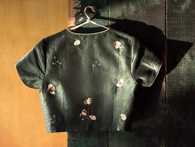 “One of the standout pieces from the collection is an ensemble that includes a tunic with floral embroidery done with silver thread, and a pair of trousers and matching dupatta with zari. The way zari has been used is beautiful — it’s very delicate and subtle,” she shares. She also lists the blouses as statement pieces. “They all have detailed work on the back, such as bird motifs done in zari,” she reveals.