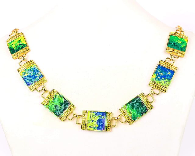 What if you could turn your favourite painting into statement jewellery? Arathi Rajagopalan, founder of House of Kalart was just experimenting with colours and textures on canvas when she came up with the idea. A graduate of NIFT, it took the Chennai-based designer up until 2010 to quit her job as the head of Merchandising at Lifestyle and find her creative expression through designing. Attempting to fuse her love for hues and knowledge of metalsmithing, the designer launched her first collection titled Suminagashi in February. “I had styled a few advertisement shoots earlier and always found that I was inclined towards jewellery. It was during a DIY experiment with crayon drip art that the idea of creating a jewellery line emerged,” she says, adding that it was the control to create forms that piqued her interest. The collection that mirrors its Japanese namesake of floating ink, follows the technique of marbling.