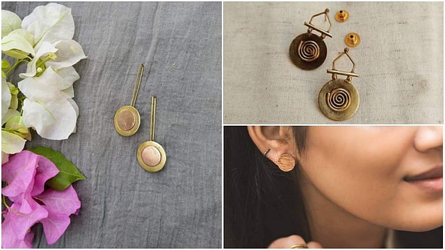 Conceptualising an entire collection based on the shape of her base material—copper and brass as wires, frames or tubes—following a haul from Tambat Ali market in Pune, the majority of Anviksha’s designs are geometric. “It’s always about what I can make with a given shape. My collections are always a combination of drawings and metal-smithing,” begins the Ahmedabad-based designer, who love the antique finish of the metal and just unveiled her collection of ear studs.