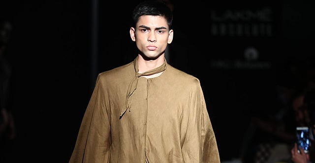 The collection definitely has an androgynous element about his creations. Both his menswear and women’s wear boast of layers and asymmetrical sleeves. “That was the idea,” says the designer who worked with ace menswear designer duo Shantanu and Nikhil before starting Antar-Agni in 2014. For Begin, Ujjwal has stuck to handwoven cotton, linen and cotton silk with the occasional appearance of metal zari. “Fabric is my hero,” says the designer who concentrates on the drapes and textiles at the beginning of his creative process, rather than starting from the sketch board. While the women can expect dresses and kurtas, the men can also opt for brave new designs like his shirt, lungi and scarf ensemble. Ujjwal’s designs are favoured by a bunch of B’town celebrities and he says he loves dressing Ayushmann Khurrana, Ranbir Kapoor, Sonakshi Sinha among others.