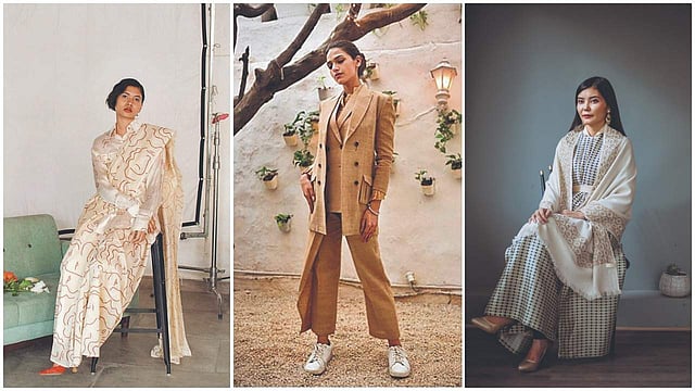 Experimenting with the composition of natural silk yarn like eri, muga and organic cotton for its distinct hand-made feel, Mumbai-based Manjushree Sakai’s collection is an ode to the weavers from the North East. Titled Down to Reality, the collection explores the history of power dressing, including Yves Saint Laurent’s Le Smoking. “The collection deeply resonates with the silhouettes that are of historical significance and is an attempt to create a style that is timeless,” says the designer whose collection of jackets, trousers and dresses are dyed shades of beige using organic Assamese tea.
