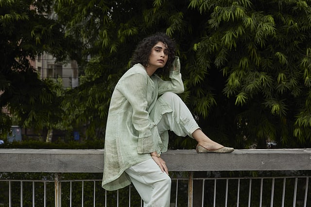 The new line, unlike their previous works, was created using textiles — metallic fibre and linen (the latter being their go-to fabric) by master crafters. With occasion wear outfits, this festive special offers ready-to-wear shirt dresses, dhoti pants, drawstring pant and dupattas in mint and light pink. “We have always opted for not-so-bright colours like grey, aqua, indigo and light shades of pink. We care about using natural fabrics and age-old techniques to create garments that are sustainable and long-lasting. Most of the tops and pants in the collection, thus, allow mix-and-match as well. While we usually opt for 100 per cent natural woven linen, we tried something new by blending metallic fibre with it and the response has been great,” she shares.