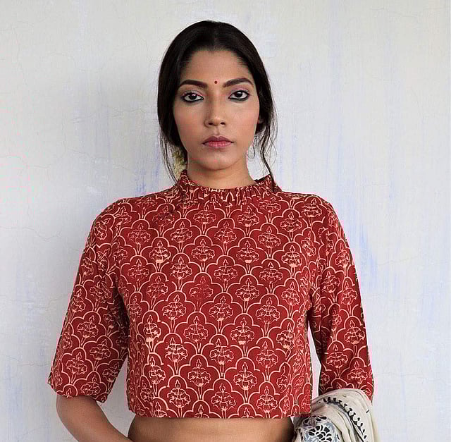 The colour palette employed exudes homeliness and ranges from soft ivories to warmer tones of mustards, oranges, reds and pinks. The collection also includes a range of cotton crop tops, that add a touch of drama to the ensembles with intricate detailing like frill necklines, back buttons and angarakha style blouses.