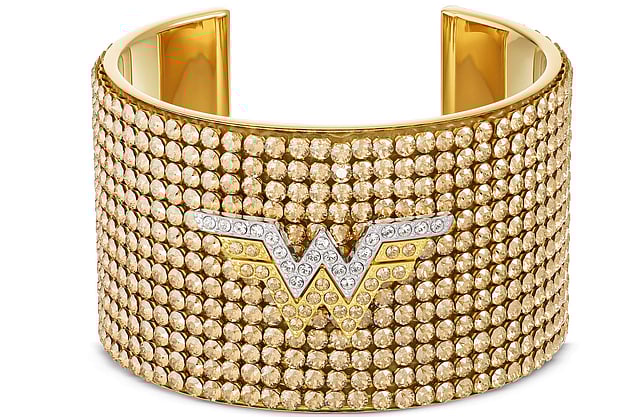 The Fit Wonder Woman necklace is a gold-tone piece with lightly coloured Swarovski crystals in different shapes and cuts, while the Fit Wonder Woman ring is a double ring with the crystal-embellished Wonder Woman symbol on top. The Fit Wonder Woman Cuff is broad and studded with pavé and Swarovski crystals. The collection also includes pieces from the Atelier Swarovski line, which are more to occasion wear.