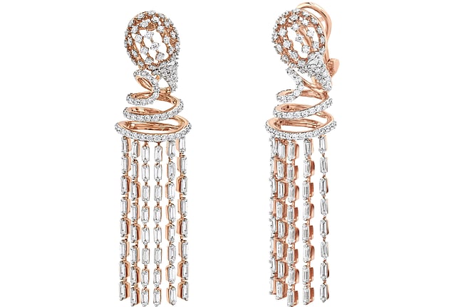 The pieces in this edit are very feminine and sleek and can be worn both for a casual outing or a formal evening. These finely crafted pieces of jewellery are graceful with luxurious cascading forms exuding elegance. Long sautoirs, waterfall earrings, multi-strand rings and elegant pendants define the showcase of this collection. Gaze-worthy eloquent arrangements of mesmerising diamonds accentuate the modern design elements of the collection.